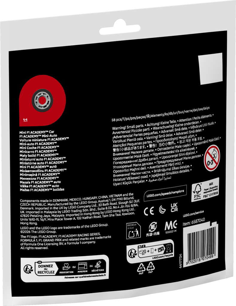 Barn från 7 år kan samla, bygga, visa upp och iscensätta tävlingar med denna F1 ACADEMY™ minibil.