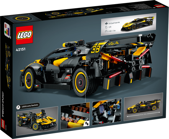Inspirera barn från 9 år att bygga sin egen racerbilsmodell med leksetet LEGO® Technic Bugatti Bolide (42151). De får njuta av ett utmanande projekt medan de skapar alla verklighetstrogna detaljer, som en fungerande W16-motor, styrning och saxdörrar. Bilens fantastiska utseende stjäl showen, med gulsvart färgskala och autentiska klistermärkesdetaljer. Efter att ha byggt och utforskat bilen kan barn stolt visa upp sin samlarmodell. En fantastisk introduktion till teknikens värld LEGO Technicbyggbara modellset har realistiska rörelser och mekanismer som introducerar unga LEGO byggare till teknikens värld på ett lättillgängligt och realistiskt sätt. Låt appen LEGO Builder guida dig och ditt barn på ett enkelt och intuitivt byggäventyr. Zooma in och rotera modeller i 3D, spara set och håll reda på era framsteg.