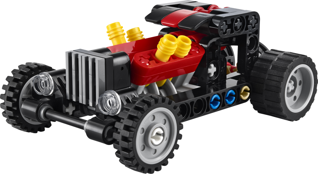 Ge fordonsfantaster en överraskning med denna LEGO® Technic Hot Rod. Bilen har rörliga kolvar, kraftiga däck och en djärv färgskala inspirerad av ikoniska hotrodbilar.