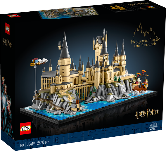 Fånga den magiska atmosfären på Hogwarts™ slott och område med denna fantastiskt detaljerade, byggbara LEGO® Harry Potter™ uppvisningsmodell (76419). Återupplev minnesvärda scener från Harry Potter när du bygger huvudtornet, astronomitornet, stora salen och båthuset, innergårdar, växthus, stigar och broar, det steniga landskapet och Svartsjön. Återskapa hemligheternas kammare, rummet med bevingade nycklar, klassrummet för trolldryckskonst och schackrummet, som vart och ett har välbekanta interiördetaljer. Utformat för uppvisning Hitta steg-för-steg-instruktioner i lådan och i appen LEGO Builder. Lägg till de klossbyggda versionerna av Durmstrangs skepp, Beauxbatons vagn och en Ford Anglia i grenarna på det piskande pilträdet, plus en minifigur av Hogwarts arkitekt och en namnskylt med texten ”Hogwarts Castle” för att fullända denna förtrollande uppvisningsmodell. Presentidé Detta klossbyggda samlarset ingår i en serie LEGO set för vuxna och blir en toppenpresent till dig själv eller andra fans av Harry Potter.