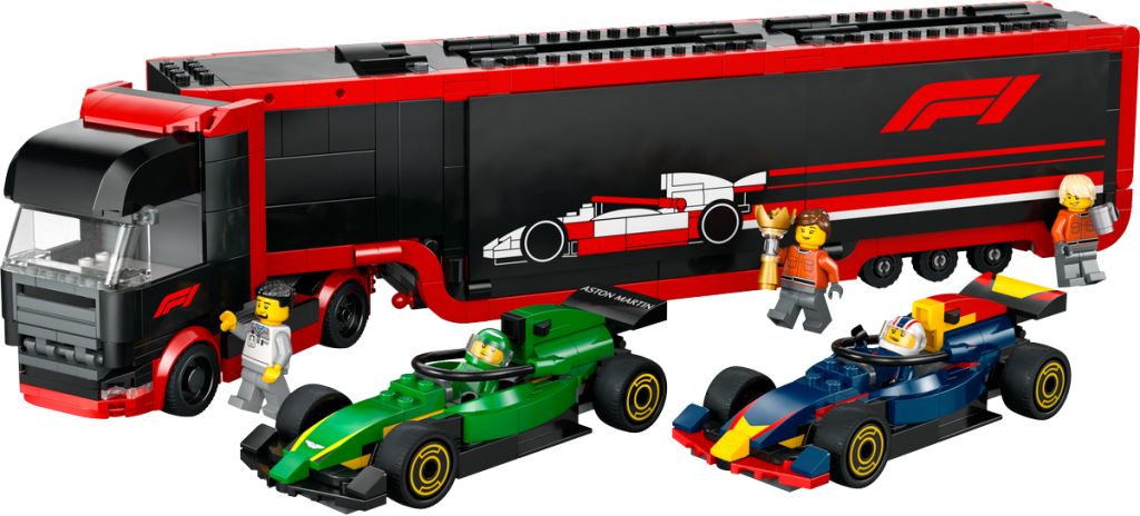 LEGO City F1 lastbil med RB20 och AMR24 F1 bilar 60445
