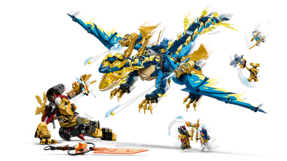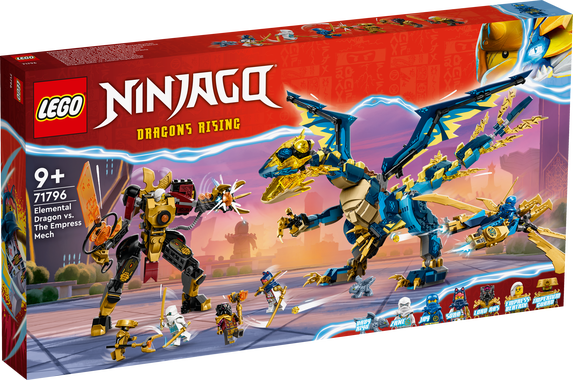 Ninjafans från 9 år kan återskapa en episk strid från tv-serien NINJAGO® Dragons Rising med Elementdraken mot kejsarinnans robot (71796). Byggsetet innehåller den skräckinjagande draken Jiro, som kan uppgraderas med vingar med gyllene klingor och knoppkanoner från en flygare för att ta sig an kejsarinnans rörliga gyllene robot och dess kraftfulla MegaQuake-vapen. Premiumleksak för barn Detta imponerande lekset innehåller 6 minifigurer. Jay, Sora och Zane har 2 katanasvärd var för att besegra trion bestående av Lord Ras med sin hammare, kejsarinnan Beatrix med sitt kejserliga svärd och en kejserlig vakt med en stav. Det finns dessutom en gul drakkraftdel som karaktärerna kan strida om, och i andra NINJAGO set finns ytterligare 4 i olika färger och 4 gyllene drakenergikärnor som barn kan samla . En rolig digital upplevelse för LEGO® byggare Låt appen LEGO Builder guida dig och ditt barn på ett enkelt och intuitivt byggäventyr. Zooma in och rotera modeller i 3D, spara set och håll reda på era framsteg.