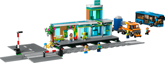 Leksetet LEGO® City Tågstation (60335) har massor av coola detaljer, som biljettkontor, kiosk, kontrollrum, plattform och en rälsdel som kan användas med andra LEGO City tågset. Barn får också en leksaksbuss, en rälsbil med en portabel toalett på släp och en plankorsning med en LEGO City vägplatta för att koppla ihop med andra City set. Lägg bara till de 6 minifigurkaraktärerna så kan äventyren börja. Roliga bygglekar för barn från 7 år Detta tågstationslekset har en enkel bygguide till varje modell så att barn kan välja att bygga sina egna LEGO leksaker eller ha roligt när de bygger tillsammans med vänner och familj. Utforska världen genom lek LEGO City lekset sätter barn mitt i all action, med realistiska fordon, detaljrika byggnader och inspirerande karaktärer för roliga rollekar baserade på verkliga scenarier.
