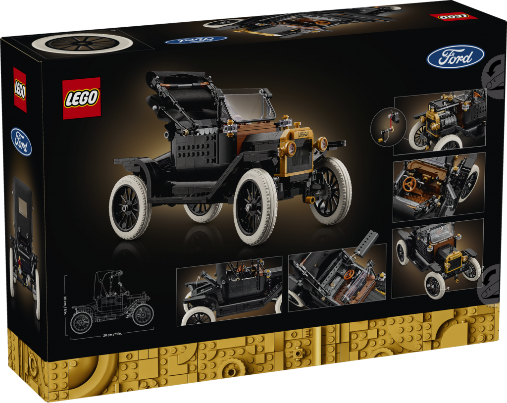 Modellen i byggsetet LEGO® Icons Ford Model T med 1 060 delar är 20 cm hög, 29 cm lång och 13 cm bred