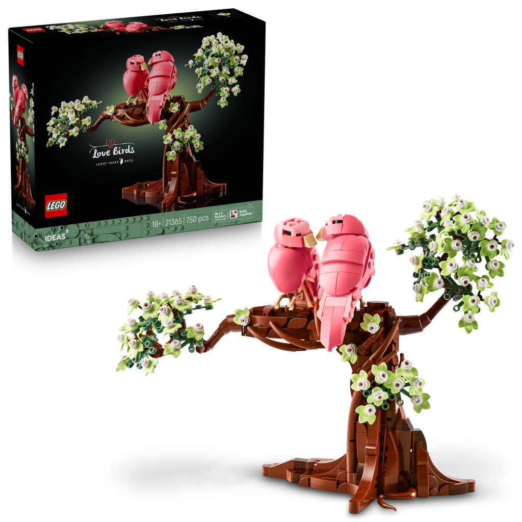 Bygg 2 korallrosa fåglar och placera dem i det detaljerade LEGO® trädet