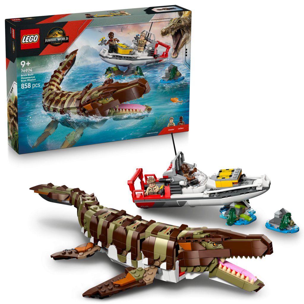 LEGO Jurassic World Båtuppdrag med klossbyggd mosasaurus 76974