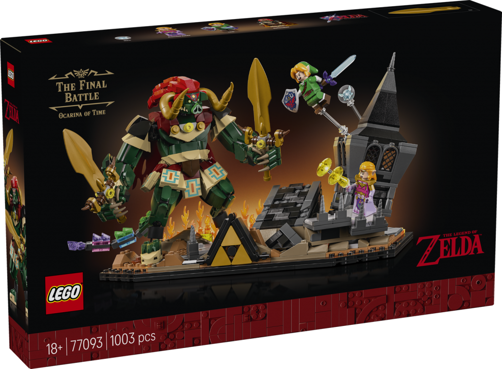 Denna LEGO® The Legend of Zelda™ samlarmodell med 1 003 delar föreställer den ikoniska slutstriden från Ocarina of Time™ och är 17 cm hög, 29 cm bred och 18 cm djup