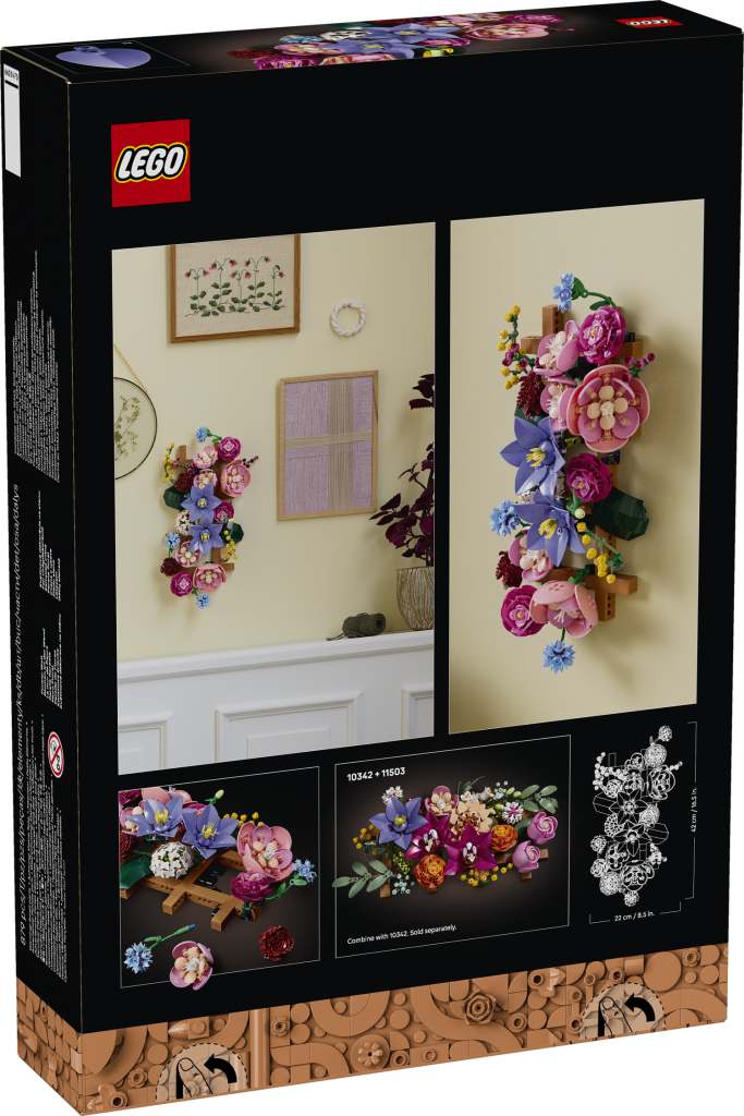 LEGO® blomstersetet med 879 delar är 22 cm högt, 42 cm brett och 8 cm djupt
