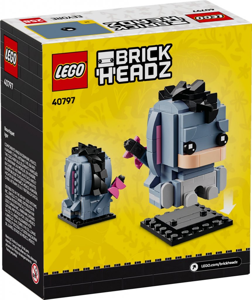 Kliv in i Sjumilaskogen och bygg ett av Disneys mest älskade djur med byggsetet LEGO® BrickHeadz™ ǀ Disney I-or (40797) för barn från 10 år. Byggsetet, som är baserat på den älskvärda åsnan från Disneys Nalle Puh, låter fans skapa den klossbyggda djurfiguren I-or med rörliga öron och fällbara ben. När den är färdigbyggd kan Disneyälskare använda leksaken för att återskapa sina favoritstunder från filmen eller stolt visa upp honom i sovrummet med hjälp av den medföljande basplattan.