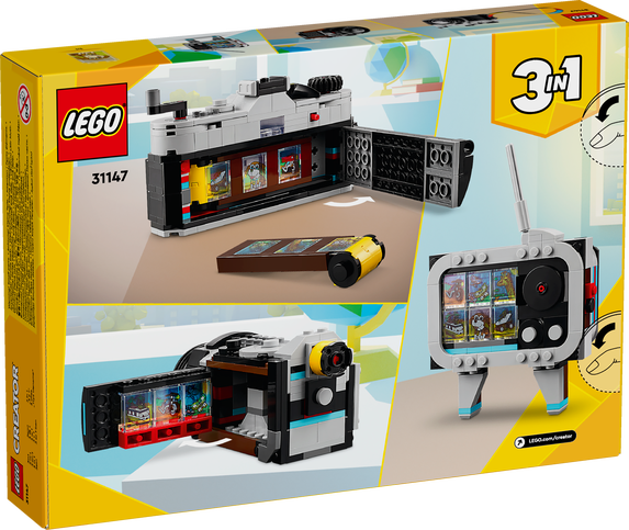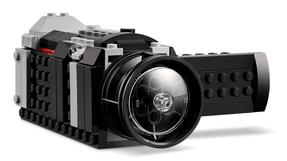 Detta LEGO® byggset med 261 delar innehåller en byggbar leksakskamera för barn som är 7 cm hög, 13 cm bred och 8 cm djup