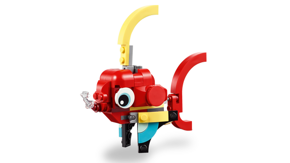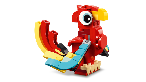 Flickor och pojkar från 6 år kan bygga och bygga om 3 olika färgglada modeller med klossarna i leksetet LEGO® Creator Röd drake
