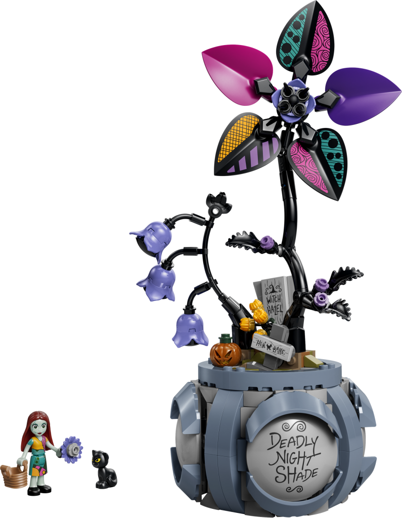 Detta LEGO® | Disney bygg- och lekset med 346 delar innehåller blommor i en blomkruka som är 27 cm hög, 12 cm bred och 10 cm djup när den är stängd