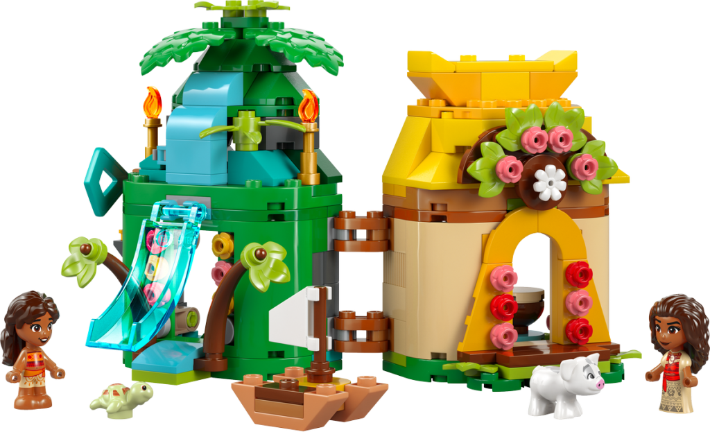Fantastiska äventyr väntar fans av Disneys Vaiana från 5 år i fantasibyggsetet LEGO® | Disney Vaianas skoj på ön (43260). Detta byggbara mikrovärldslekset inspirerat av Disneys filmVaiana 2 är ett litet set med en stor värld inuti, med en dubbelsidig modell. Ön har en vattenfallsrutschkana med en dold ingång och i huset finns det rum för LEGO | Disney mikrodockorna av Vaiana och lillasyster Simea, plus plats för Pua. Det finns en liten båt och engagerande berättelsestartare, och ön kan låsas med nyckeln, vilket gör den perfekt för bärbar lek på språng.