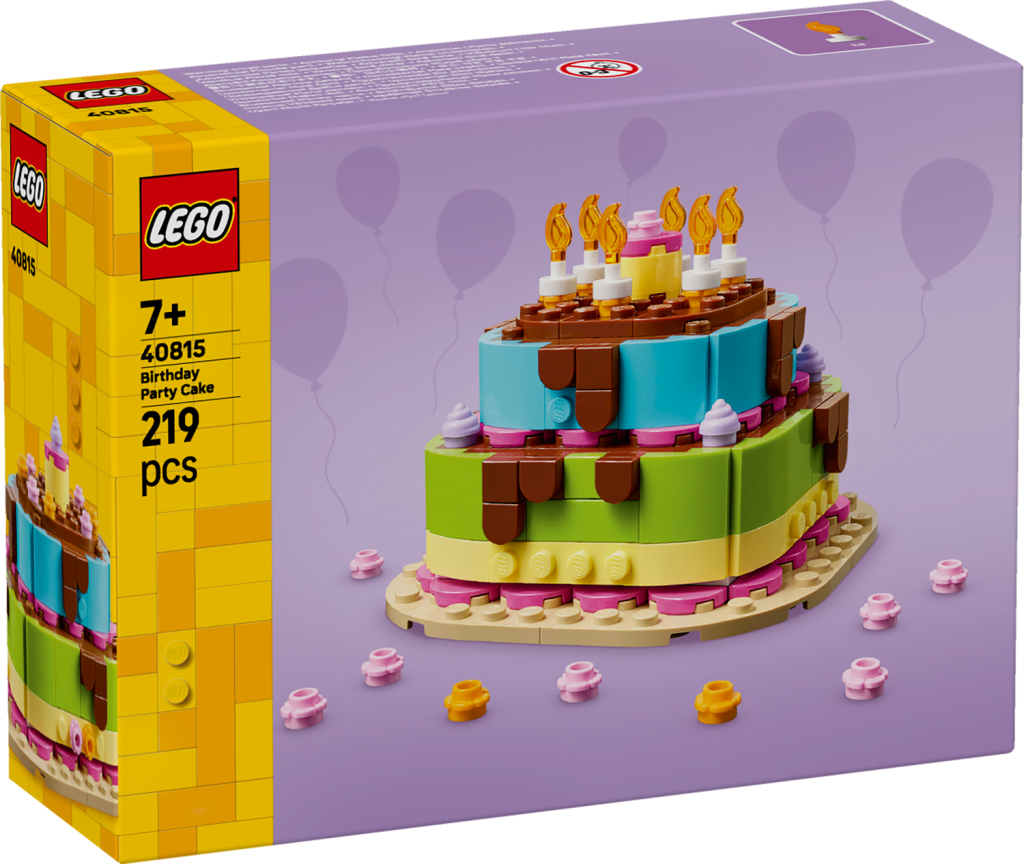 Setet LEGO® Födelsedagstårta innehåller LEGO dekorationer