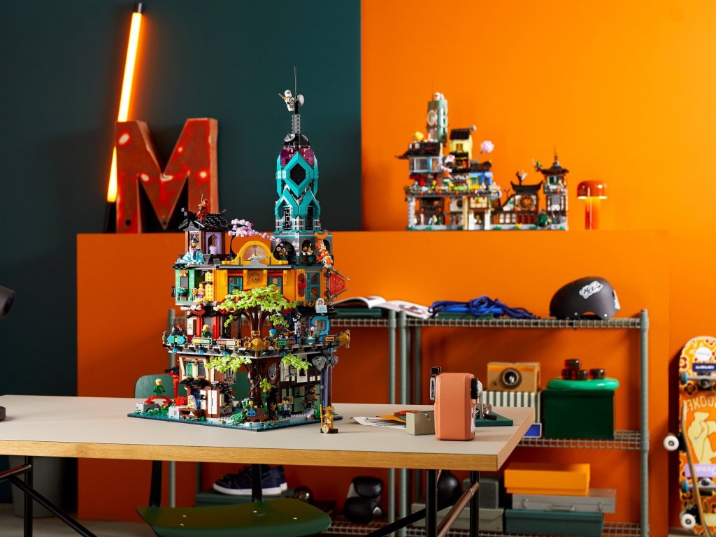 Det finns något för alla NINJAGO fans på var och en av de tre detaljerade våningarna, som en glassbutik, Chens nudelrestaurang, kontrollrummet och ett museum som hyllar ninjornas rika historia. Byggsetet är också fullspäckat med 19 minifigurer, bland annat alla ninjorna och några av deras allierade, för att förstärka bygg- och lekupplevelsen.