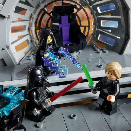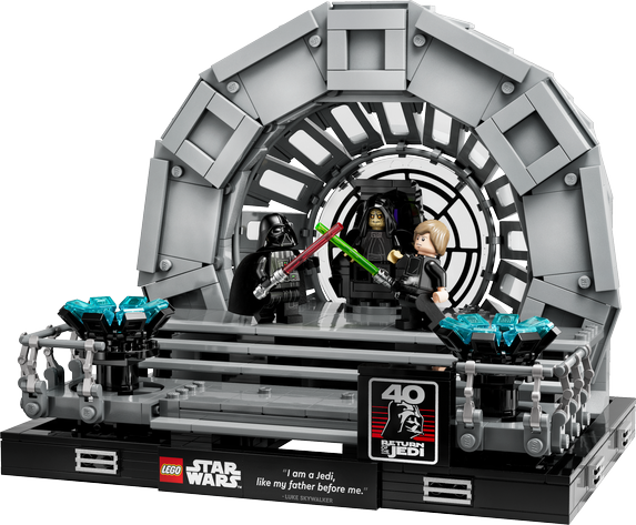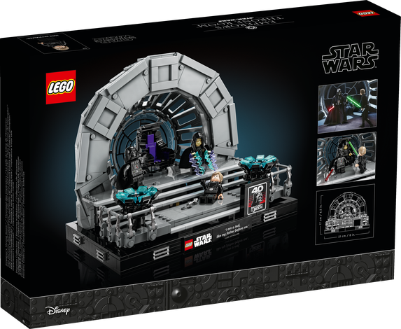 Återupplev den dramatiska slutscenen i den klassiska Star Wars™ trilogin med setet Emperor 's Throne Room Diorama (75352). Setet innehåller massor av autentiska detaljer, däribland en del med ett dödsstjärnefönster, speciellt utformad för detta set, och kejsar Palpatines roterande tron. Fånga all action med LEGO® minifigurer av Darth Vader och Luke Skywalker, båda med ljussablar, och kejsar Palpatine med 2 sithblixtdelar. Bygg- och uppvisningsmodellen fulländas med en skylt med Lukes kända replik, ”I am a Jedi, like my father before me”, och en skylt med 40-årsjubileumsloggan för Star Wars: Jedins återkomst. En galax av glädje Setet ingår i en samling LEGO Star Wars set för vuxna, med andra byggbara dioramor med ikoniska scener, och blir en perfekt gåva till dig själv eller någon annan vuxen som gillar Star Wars. LEGO Builder Appen LEGO Builder gör det enkelt att hålla ordning på bygginstruktioner. Använd appen för att zooma in modeller i 3D, spara set och hålla reda på dina framsteg.