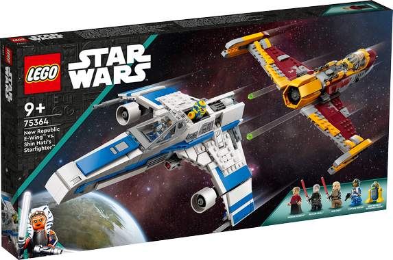 Gör dig redo för en spännande galaktisk jakt med byggsetet LEGO® Star Wars™ New Republic E-Wing vs. Shin Hati’s Starfighter (75364) för barn från 9 år. Setet innehåller 2 autentiskt detaljerade klossbyggda rymdskeppsmodeller från Star Wars: Ahsoka, 4 LEGO minifigurer av populära karaktärer och nya republikens rymddroidmekaniker för kreativa lekar. Varje rymdskepp har öppningsbar minifigurcockpit, 2 knoppkanoner och plats för att förvara vapen. E-wing Starfighter har dessutom ett utrymme bakom cockpiten för kapten Porters droid, plus infällbart landningsställ. En hjälpande hand Ladda ner appen LEGO Builder, där byggare kan spara set, följa sina framsteg och använda verktyg för att zooma in och rotera en digital 3D-version av den verkliga byggmodellen medan de bygger. En galax full av skoj LEGO Koncernen har återskapat ikoniska rymdskepp, fordon, platser och karaktärer från Star Wars världen sedan 1999. Utforska det enorma sortimentet och upptäck coola presentidéer för Star Wars fans i alla åldrar.