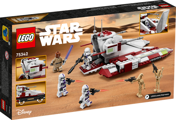 Fans av Star Wars: The Clone Wars kan iscensätta spännande strider mellan Mace Windus klonsoldater i 187:e legionen och stridsdroiderna med denna LEGO® klossbyggda Republic Fighter Tank (75342). Tanken har dolda hjul för svävareffekt, 2 höjbara kanoner med fjädermekanism och ett utkikstorn för klonkommendören högst upp. Setet har 4 LEGO minifigurer: Mace Windu och klonkommendören och klonsoldaterna i 187:e legionen i nya versioner för maj 2022, plus 2 stridsdroider – alla med coola vapen. Presentidé för barn från 7 år Tänker du köpa denna fantastiska byggleksak i present till någon som älskar Star Wars™ men är nybörjare på LEGO set? Inga problem – setet innehåller steg-för-steg-instruktioner som hjälp genom den roliga, kreativa resan. En galax av valfrihet LEGO Koncernen har återskapat ikoniska rymdskepp, fordon, platser och karaktärer från Star Wars världen sedan 1999. LEGO Star Wars har blivit ett av koncernens mest framgångsrika teman, med en mängd byggbara modeller som uppskattas av alla åldrar.