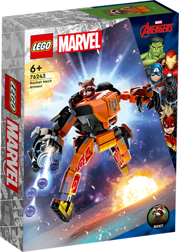 Fans av Marvel Studios Guardians of the Galaxy från 6 år kommer att älska LEGO® Marvel Rocket i robotrustning (76243). Den superstora figuren sätter Marvels skjutgalna tvättbjörn i cockpiten på sin egen mäktiga stridsmaskin. Helt ledad robotfigur med Rocket Raccoon LEGO minifiguren Rocket passar i den öppningsbara cockpiten på den superstora Rocketroboten, som håller ett enormt, 6-knoppsskjutvapen i ena handen. Robotens rörliga armar, ben och fingrar gör att den kan placeras och ställas i position för oändliga lek- och uppvisningsmöjligheter. Det finns även ett mindre vapen som Rocket kan använda när han inte sitter i roboten. Ännu mer digitalt skoj finns i appen LEGO Builder, med intuitiva verktyg för att zooma och rotera som låter barn visualisera sin modell medan de bygger.